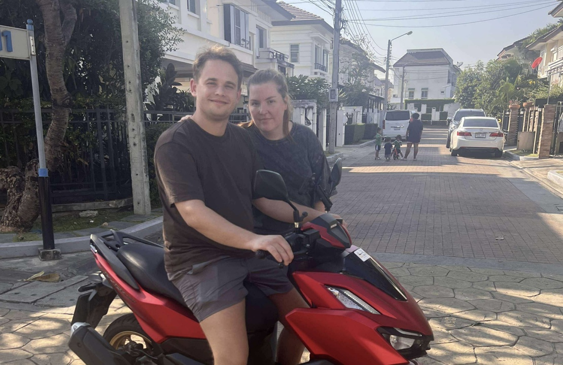 Men etterhvert skal vi få tatt motorsykkel lappen i Thailand, for å kunne kjøpe en egen moped. Ironisk nok legger jeg ved bilde av den vi kjører med nå på turist-kvoten.