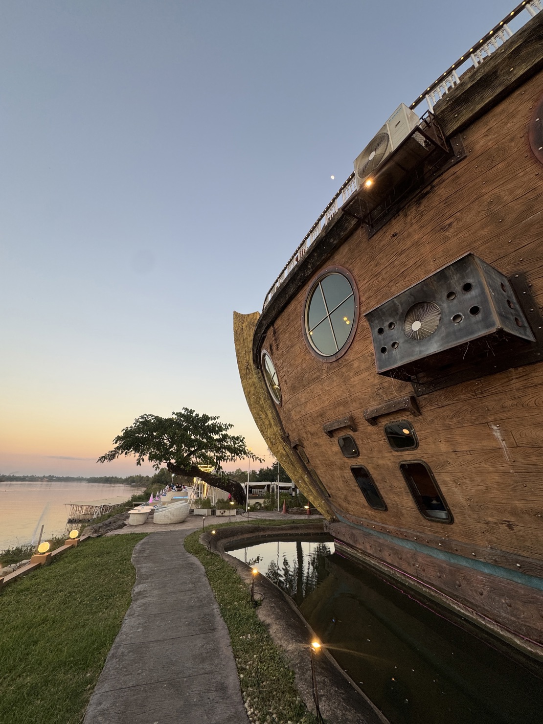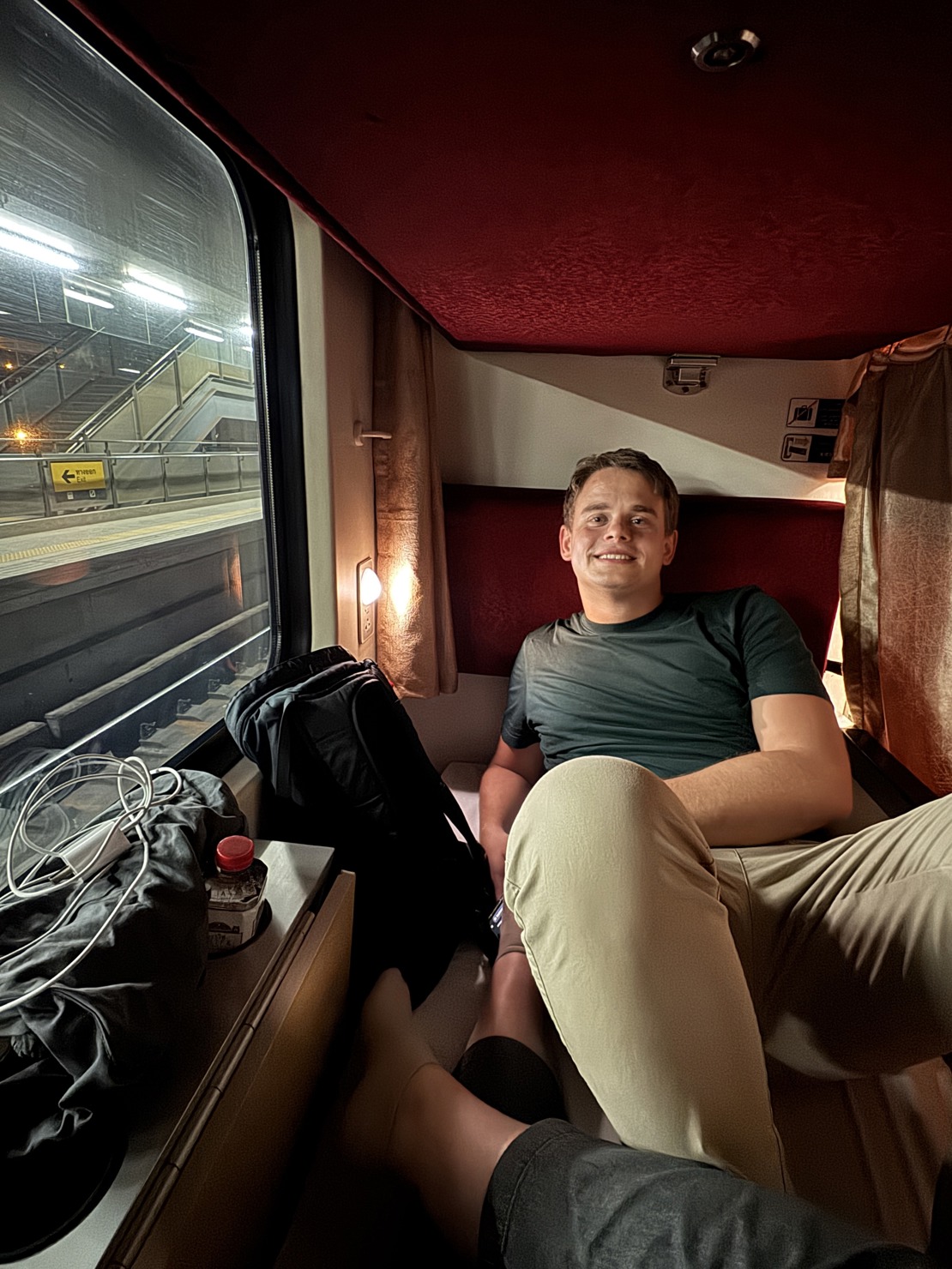 Etter en kjapp tur innom en restaurant som så ut som en båt og som hadde insektsvermer i 2. mosebokstil, la vi oss på toget og sov hele veien til Bangkok.